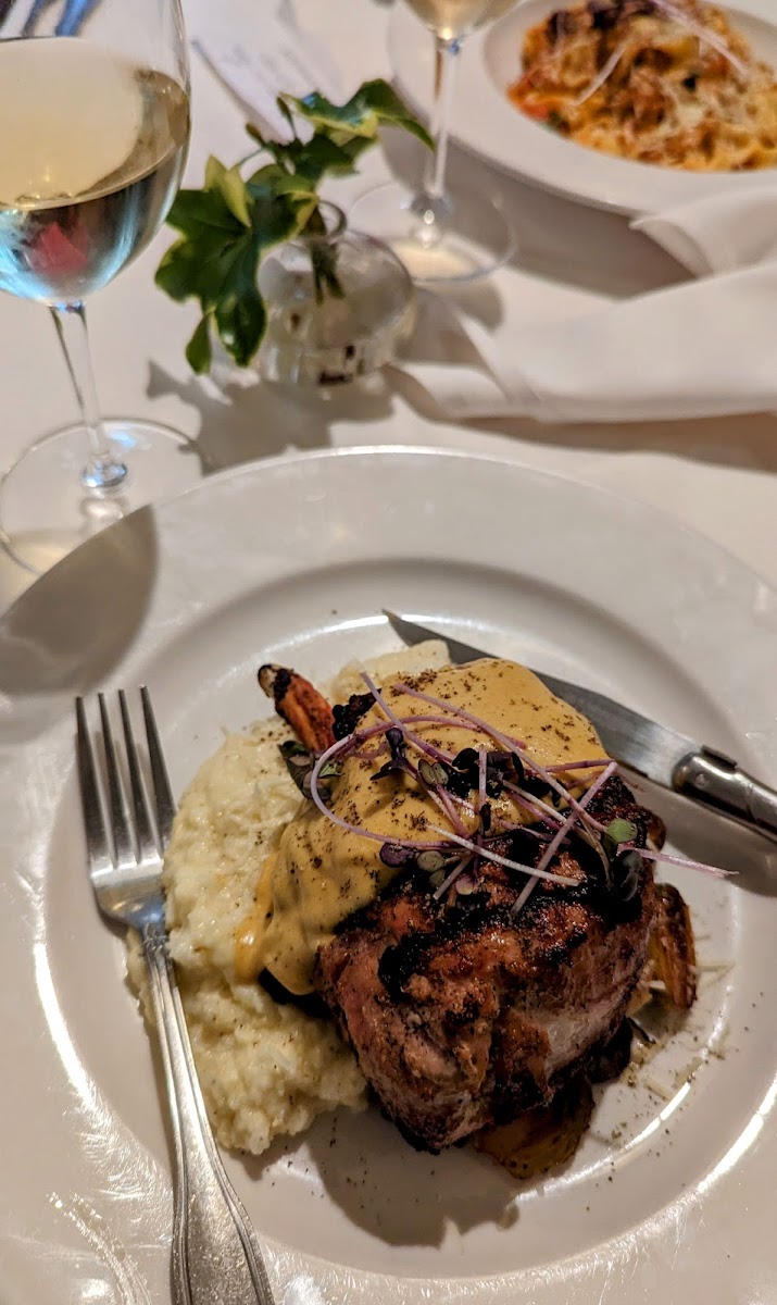 Loved my dinner experience. Enjoyed my Riesling wine. The porkchop was just to die for. My boyfriend loved his veal. I wouldn't get the wedge salad again, too expensive for what it is but the caramel torte was great!