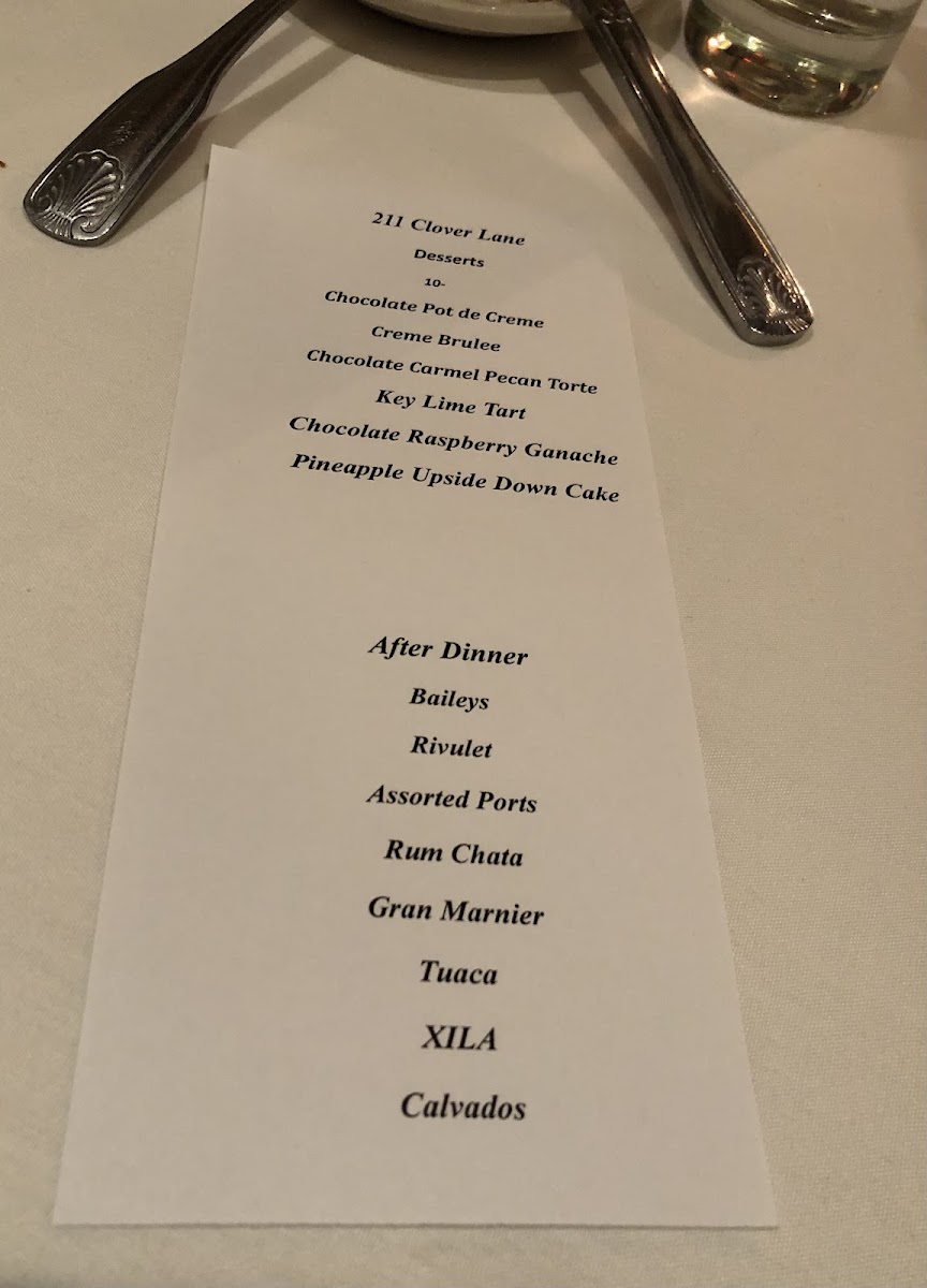 The menu at 211 Clover Lane offers a refined yet approachable European dining experience, blending thoughtfully prepared dishes with an intimate wine bar ambiance. Guests can expect a selection that leans toward comforting, well-crafted plates, making it a great choice for relaxed dinners or special occasions.